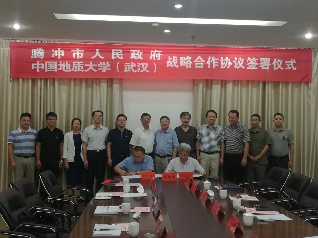 6月28日,我校与云南省腾冲市签署战略合作协议。云南省腾冲市市长茶春桥一行,校长王焰新,党委常委、组织部部长储祖旺,滇西应用技术大学珠宝学院党委书记张雷、院长尹作为,双方相关部门负责人参加签约仪式。