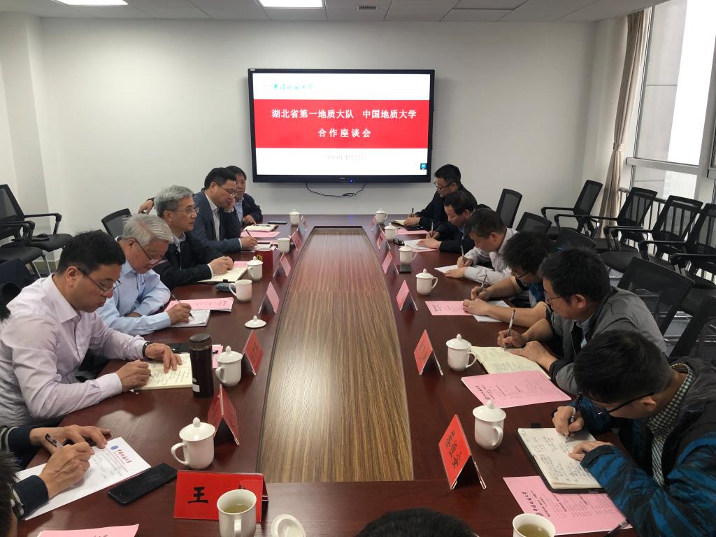 4月22日,湖北省地质局第一地质大队党委书记、队长胡清乐一行来校洽谈合作。校长王焰新,副校长刘杰,中科院院士金振民,双方相关单位负责人参加合作交流。