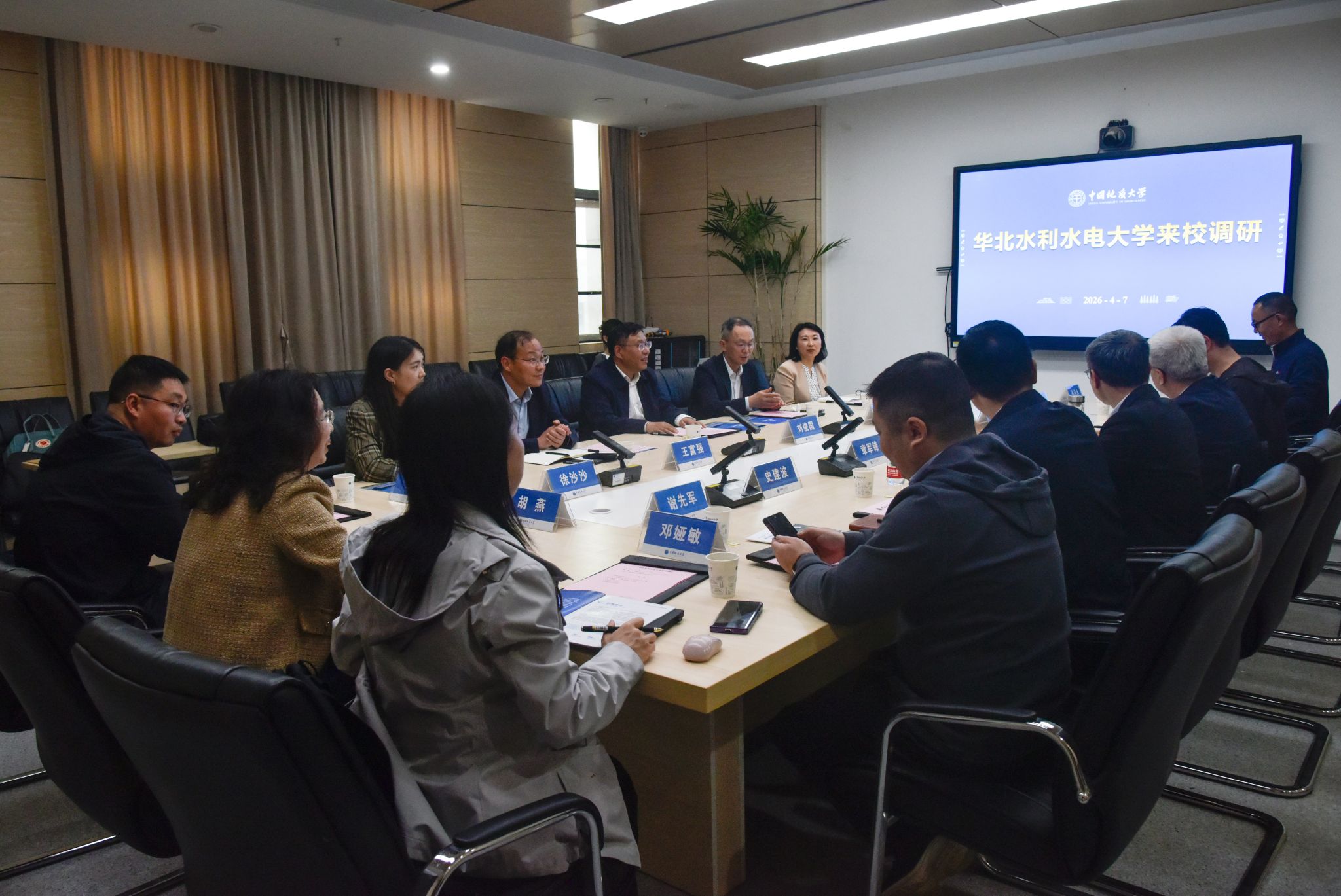 地大新闻网讯(通讯员 刘凤莲 江聪 摄影 贾绍杰 孔凡非)4月7日,华北水利水电大学校长刘俊国一行,在我校未来城校区环境学院开展调研交流。挪威科学与文学院院士、挪威工程院院士许崇育,黄河研究院院长王富强,华北水利水电大学水资源学院副院长于福荣、青年教师徐沙沙等陪同调研。