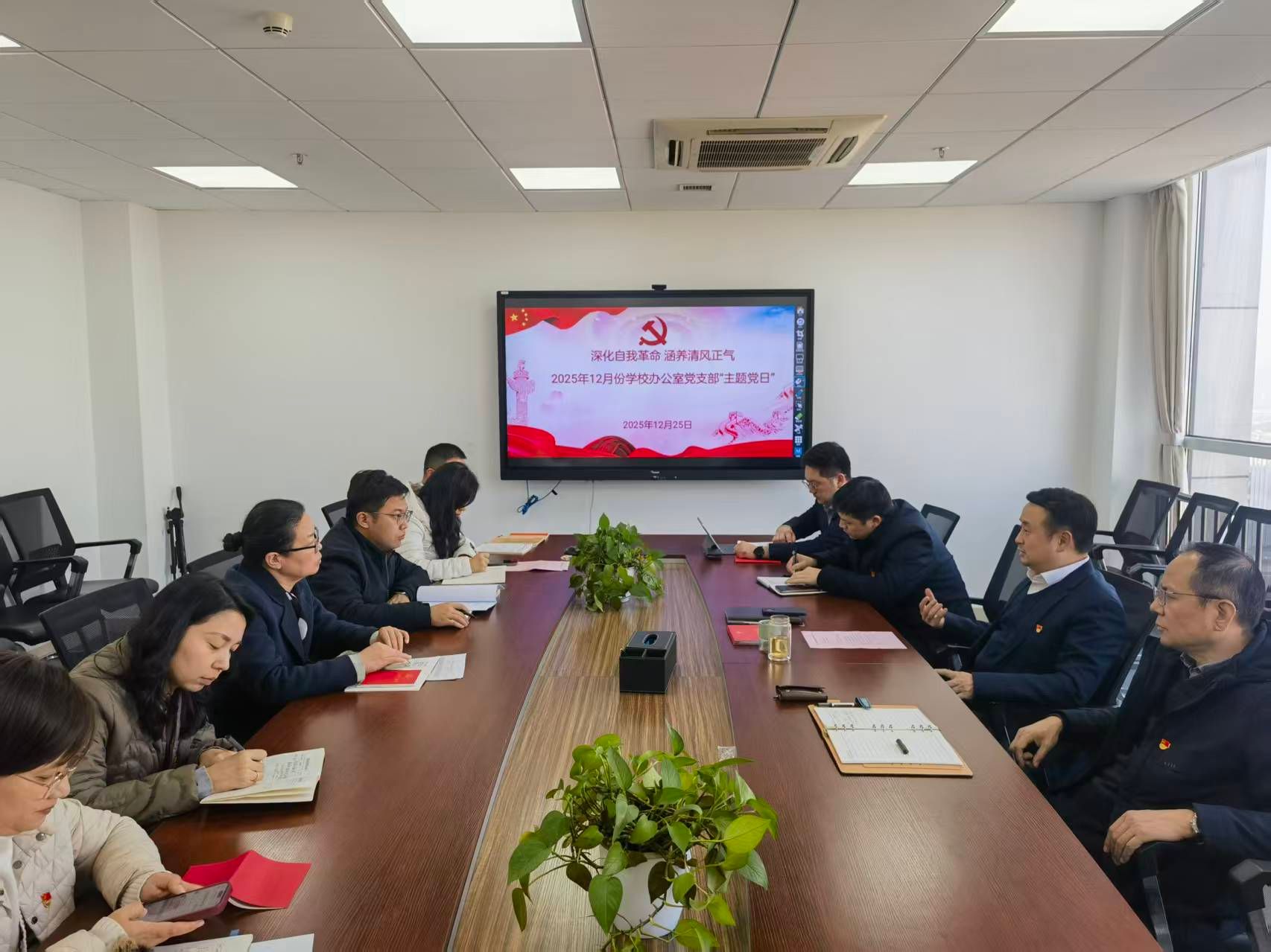 (通讯员 王艳波)12月25日下午,学校办公室党支部组织开展12月份主题党日活动,主题为“深化自我革命 涵养清风正气”。支部书记张玮同志主持会议。