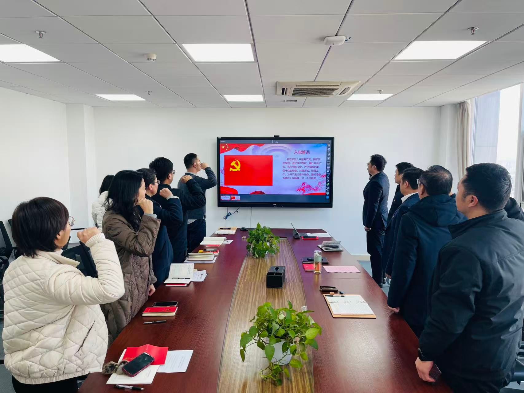 全体党员重温入党誓词,程旬同志领誓;诵读党章第七章党的纪律有关内容,刘庆庆同志领读。
